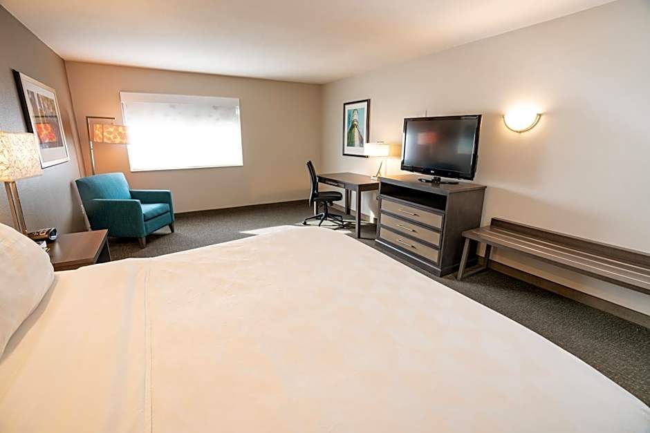 This quiet, secluded room offers the perfect retreat with a King bed, Sofa Sleeper, Walkin Shower a microwave mini fridge Keurig coffee maker, and an HD TV for your convenience. Enjoy a peaceful, relaxing atmosphere away from the bustle of the hotel, ideal for restful nights and unwinding.